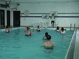 Olympic Length Lap Pool Enjoy a swim in our heated, indoor lap pool. Count your laps for the swim club, have fun in a low-impact water exercise class, or join a water sports league! We offer three water aerobics classes, along with certified professional instructors. Family swimming every weekend. Lifeguards are always on duty. Reserve the pool for private parties....swim lessons available.